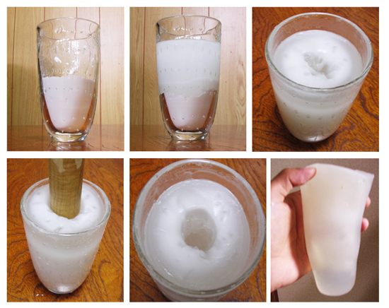 - Пятый вариант — для настоящих гурманов. Ниже на картинках прописаны все этапы, дополним их вкратце. Для изготовления мужского мастурбатора берем в руки кукурузный крахмал и вазу. На 100 гр крахмала добавьте 100 грамм воды, тщательно перемешайте полученную массу, добавьте еще 100 грамм воды и засуньте вазу с полученной смесью на минуту в микроволновку на 30 секунд. Когда все это застынет, при помощи подручных средств сделайте внутри небольшое отверстие и поставьте в микроволновку еще на 30 секунд. Затем подберите палку по размеру полового члена и расширьте отверстие, но вставляйте не до конца, а примерно на три четверти. Дальше засуньте вазу в холодильник на полчаса, после охлаждения удалите лед. Резина, похожая на желе, создана для Вашего удовольствия!