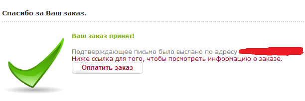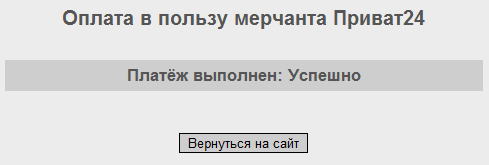 3) Шаг третий. На следующей странице Вы увидите сообщение о том, что процесс оформления заказа прошел успешно. Нажмите на кнопку "Оплатить заказ" для перехода к странице авторизации на сервере ПриватБанка.