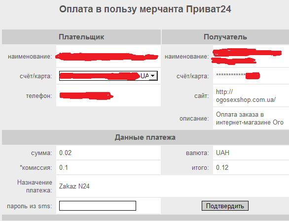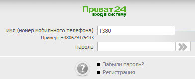 4) Шаг четвертый. Перед Вами форма для ввода логина и пароля в системе Приват24. Обратите внимание - Вы уже покинули сайт ogosexshop.com.ua и находитесь на сервере ПриватБанка. Даже если Вы уже авторизованы в системе Приват24, в целях безопасности сервер попросит ввести номер телефона и пароль еще раз.