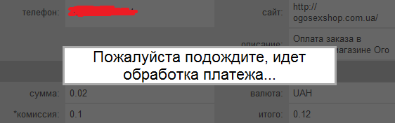 6) Шаг шестой. Идет обработка платежа. Длительность проведения платежа зависит от загруженности сервера ПриватБанка. Обычно - в пределах 2-10 секунд.